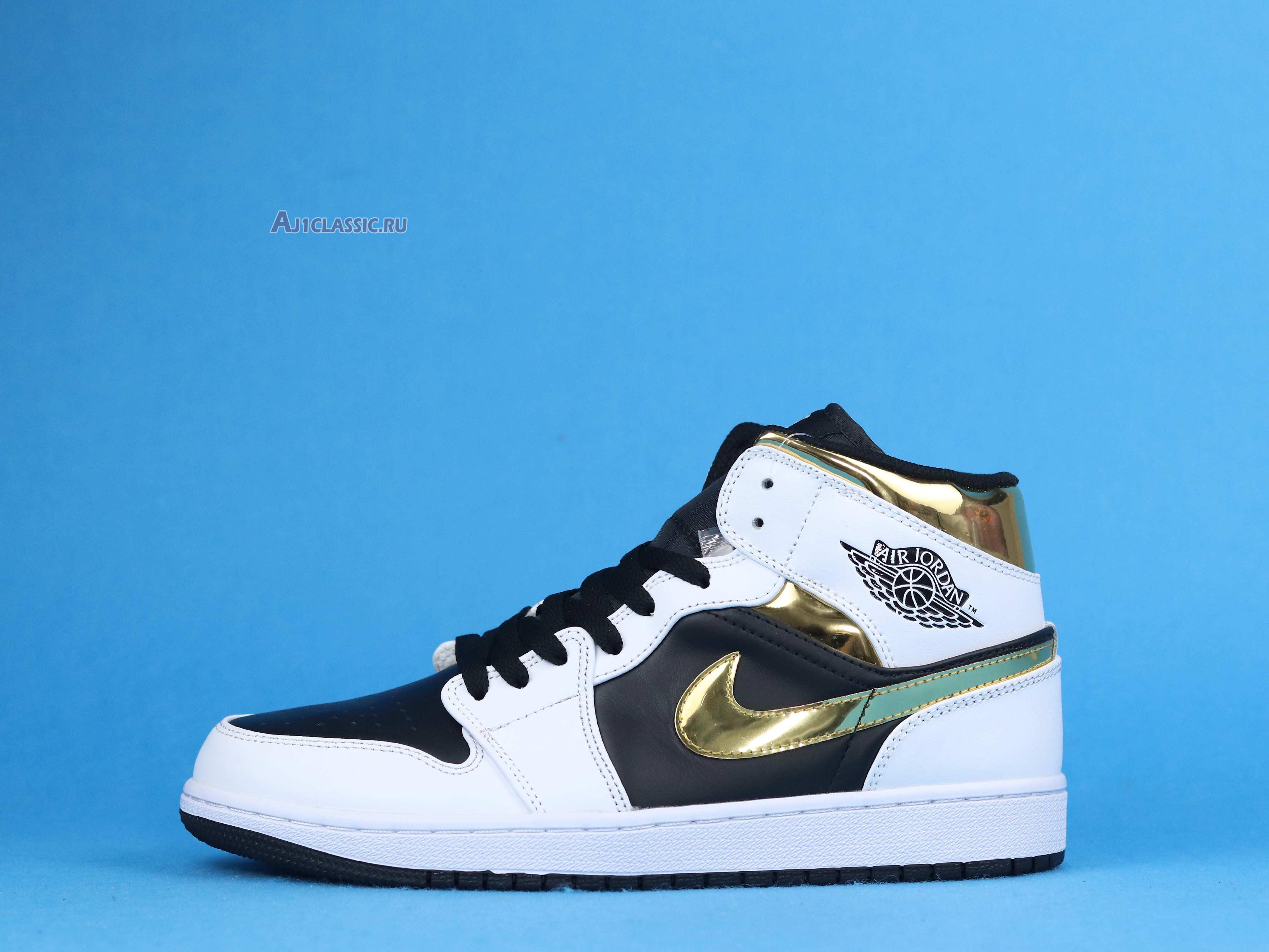 Air Jordan 1 Mid GS "White Gold" 554724-190 White/Black-Metallic Gold Sneakers