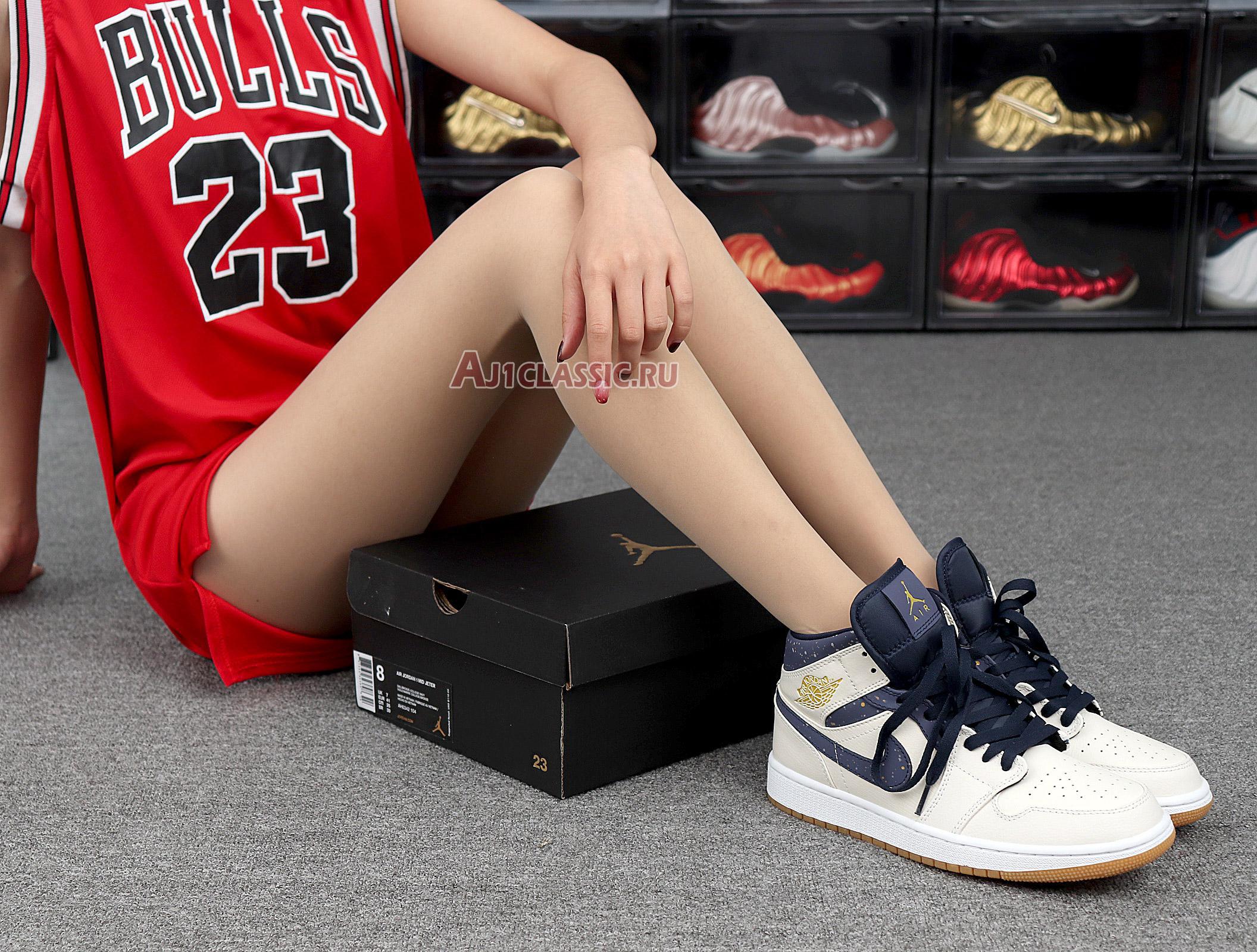 Air Jordan 1 Mid "Jeter" AH6342-104 Sail/Bronze-College Navy Sneakers