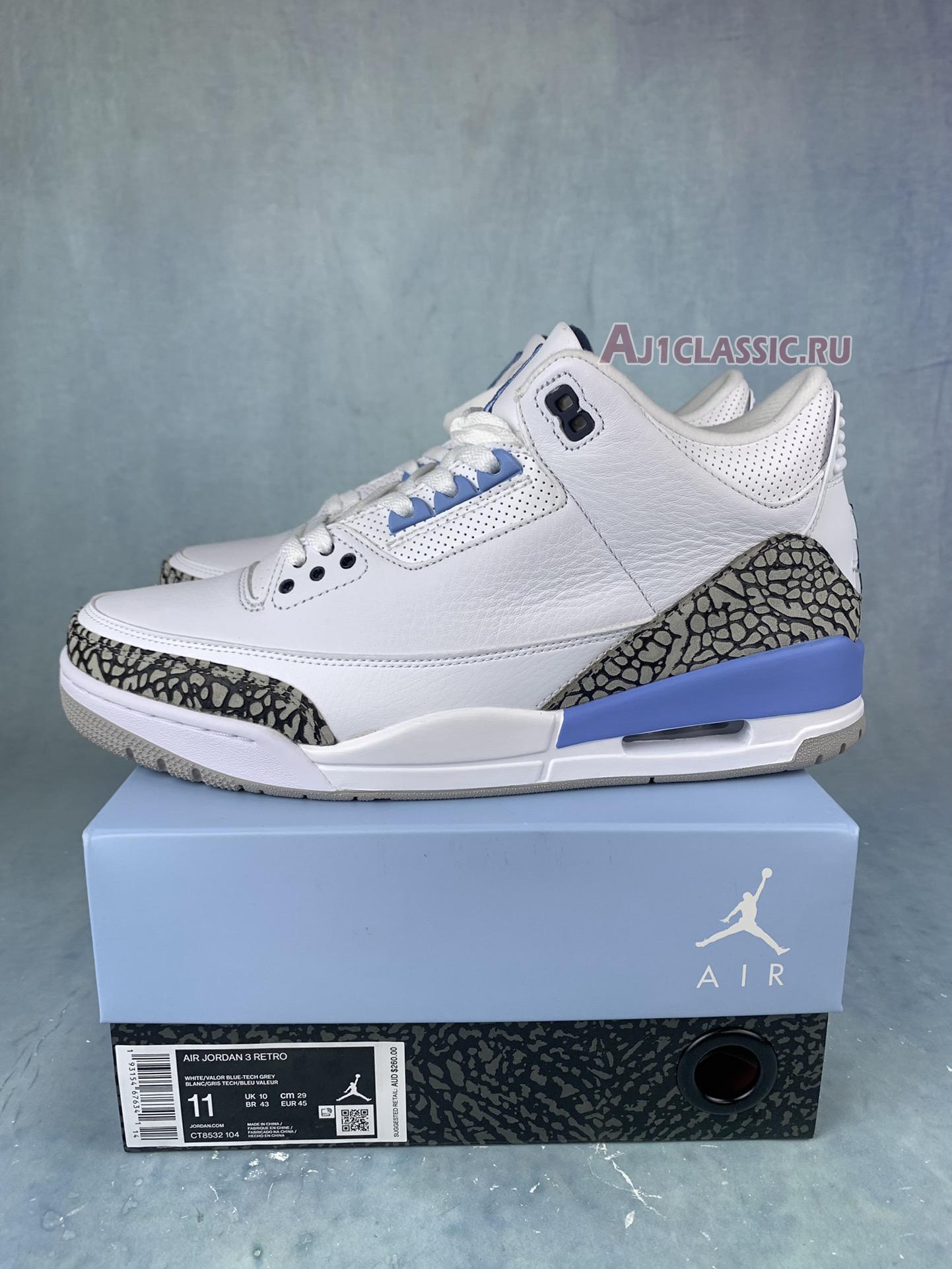 Air Jordan 3 Retro "UNC" CT8532-104-1 White/Valor Blue/Tech Grey Sneakers