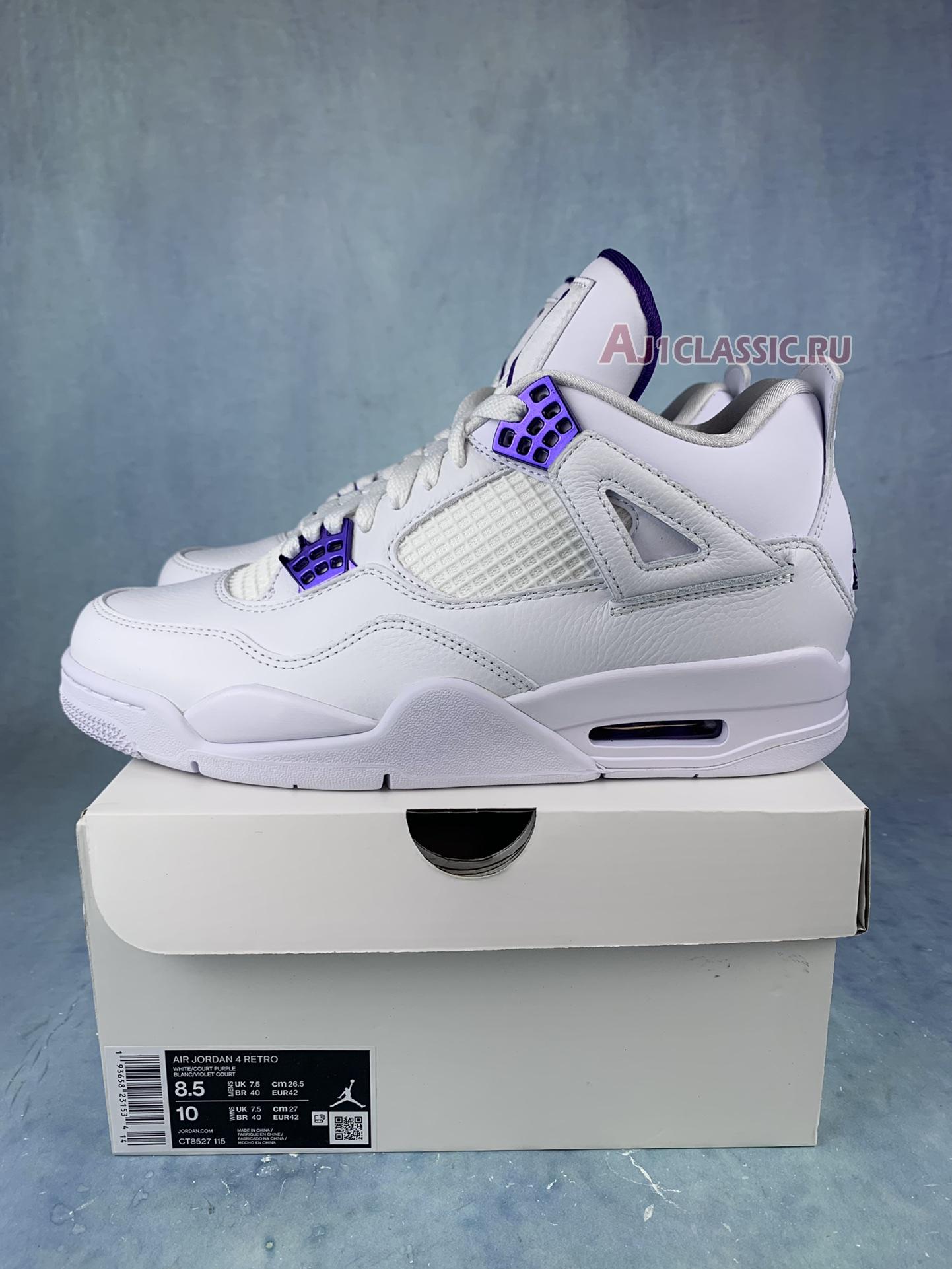 Air Jordan 4 Retro "Purple Metallic" CT8527-115 White/Court Purple/Metallic Silver Sneakers