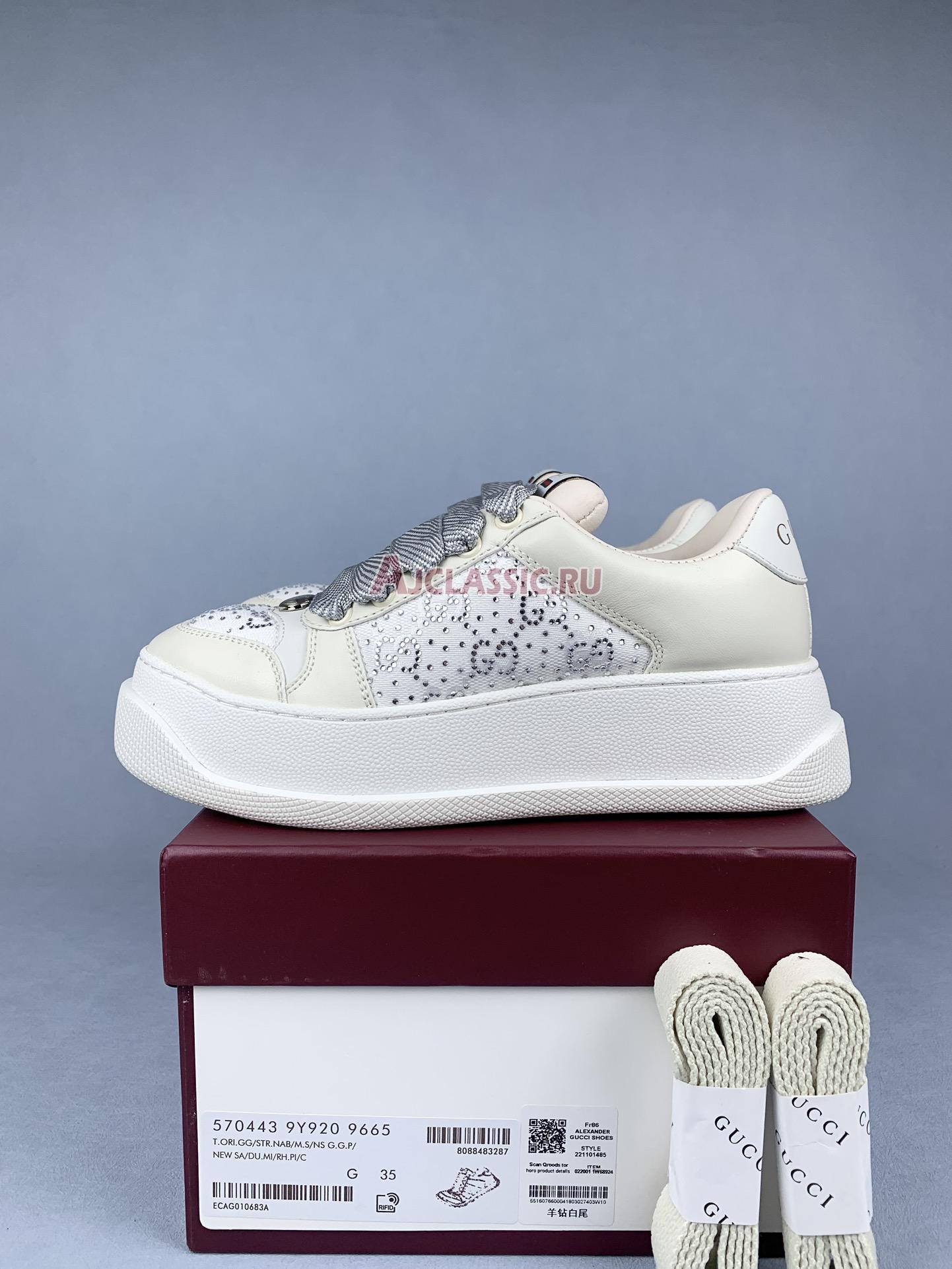 New Gucci Wmns Screener "White GG Lame" Sneaker 577684 2C830 9150 Shoes
