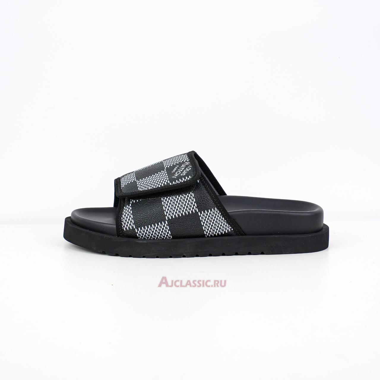Louis Vuitton LV Miami Leather Slippers "Velcro Comfort Slip-on Fashion Slide Black White" Black/White 1AANB7-2