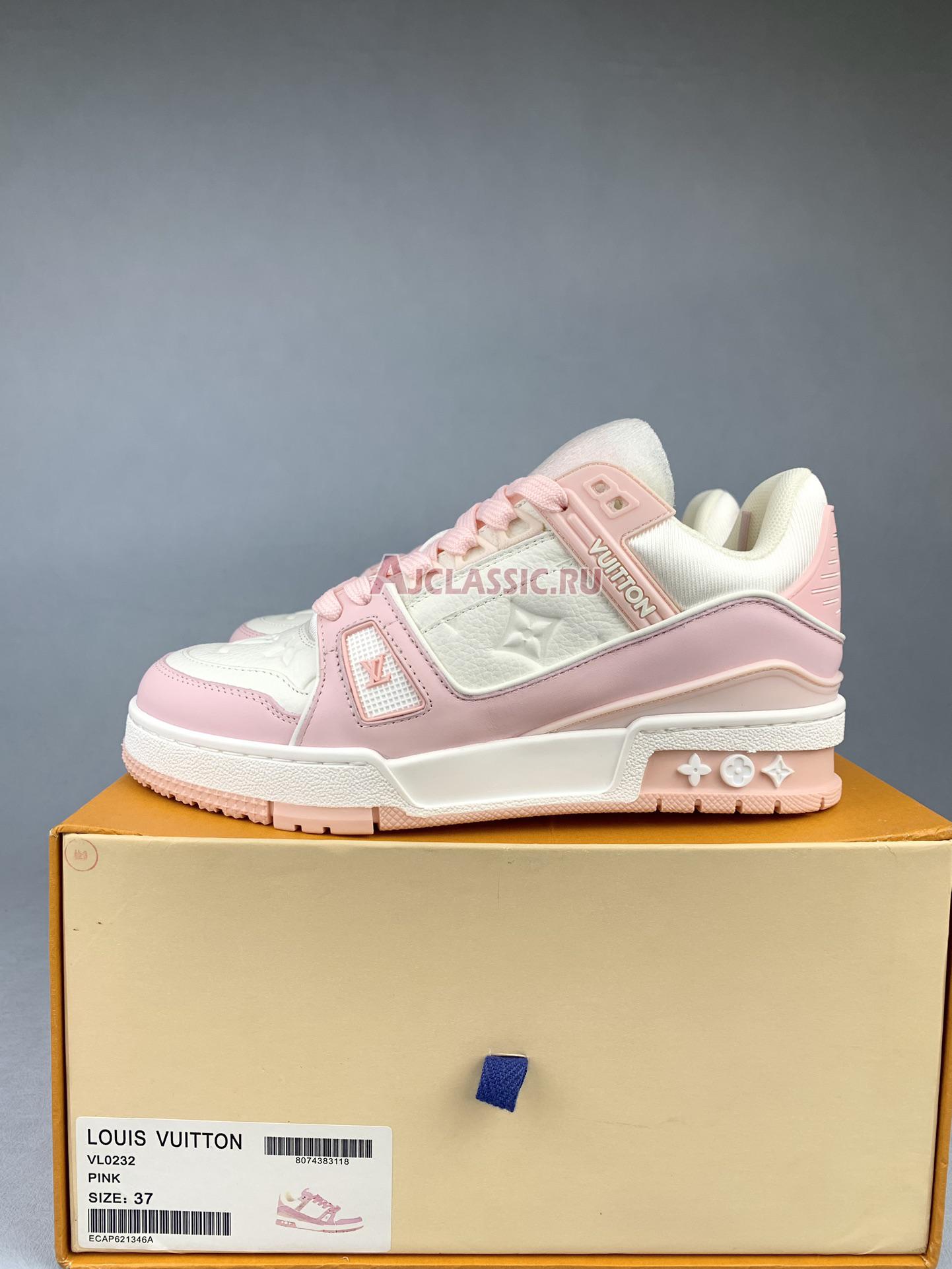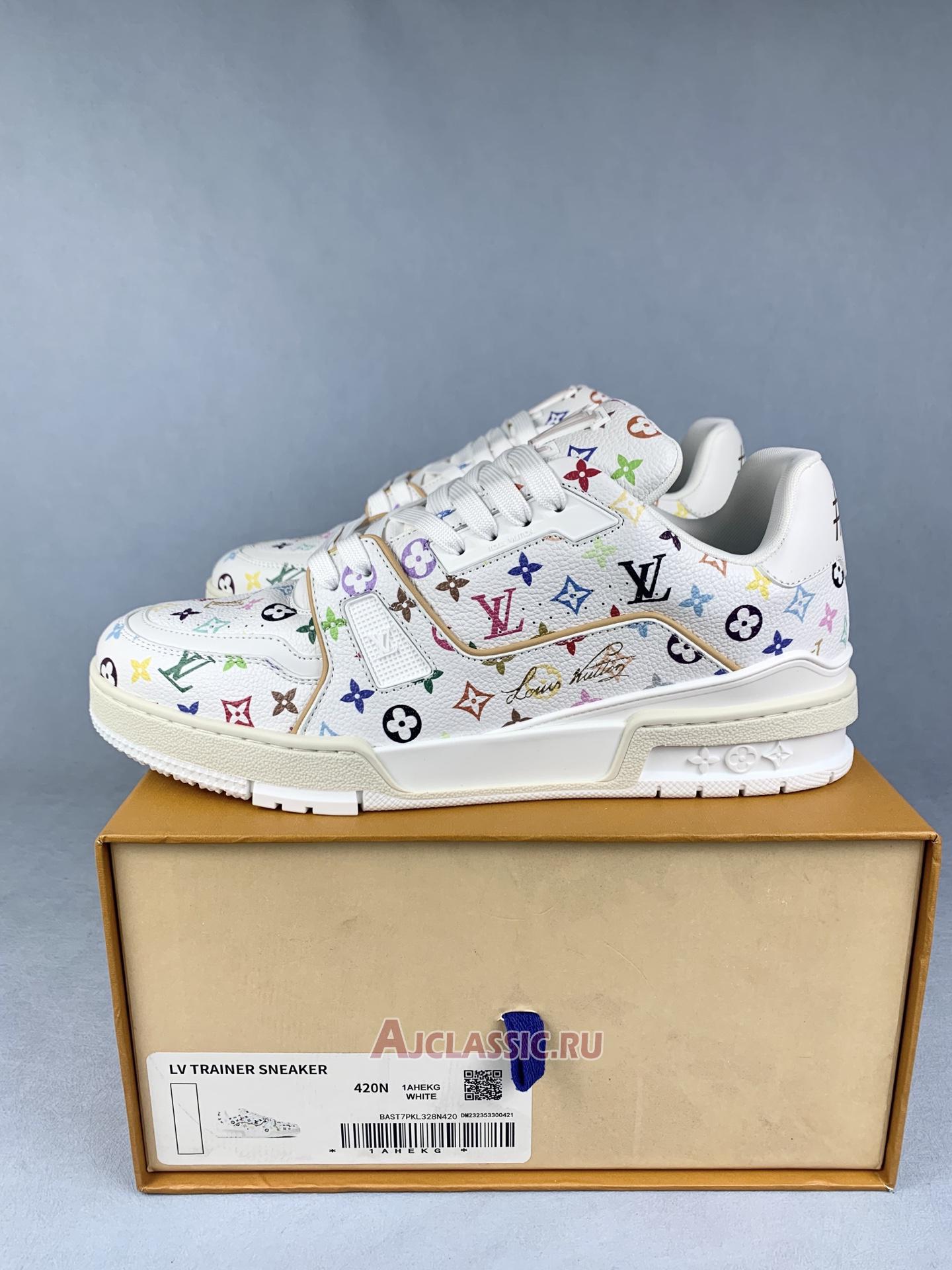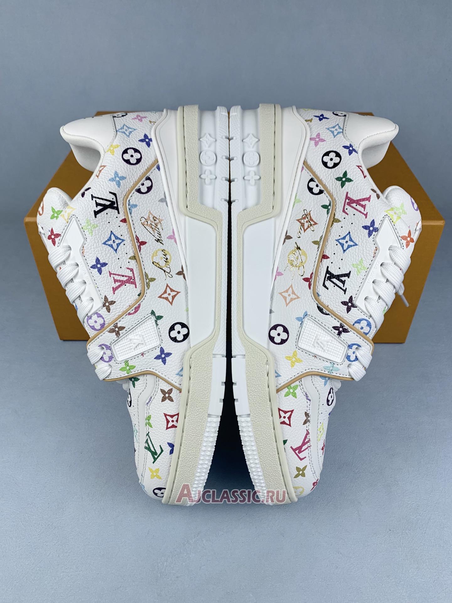 New Takashi Murakami x Louis Vuitton LV Trainer Sneaker "White Pink Monogram Flowers" 1AGZEB-2 Shoes