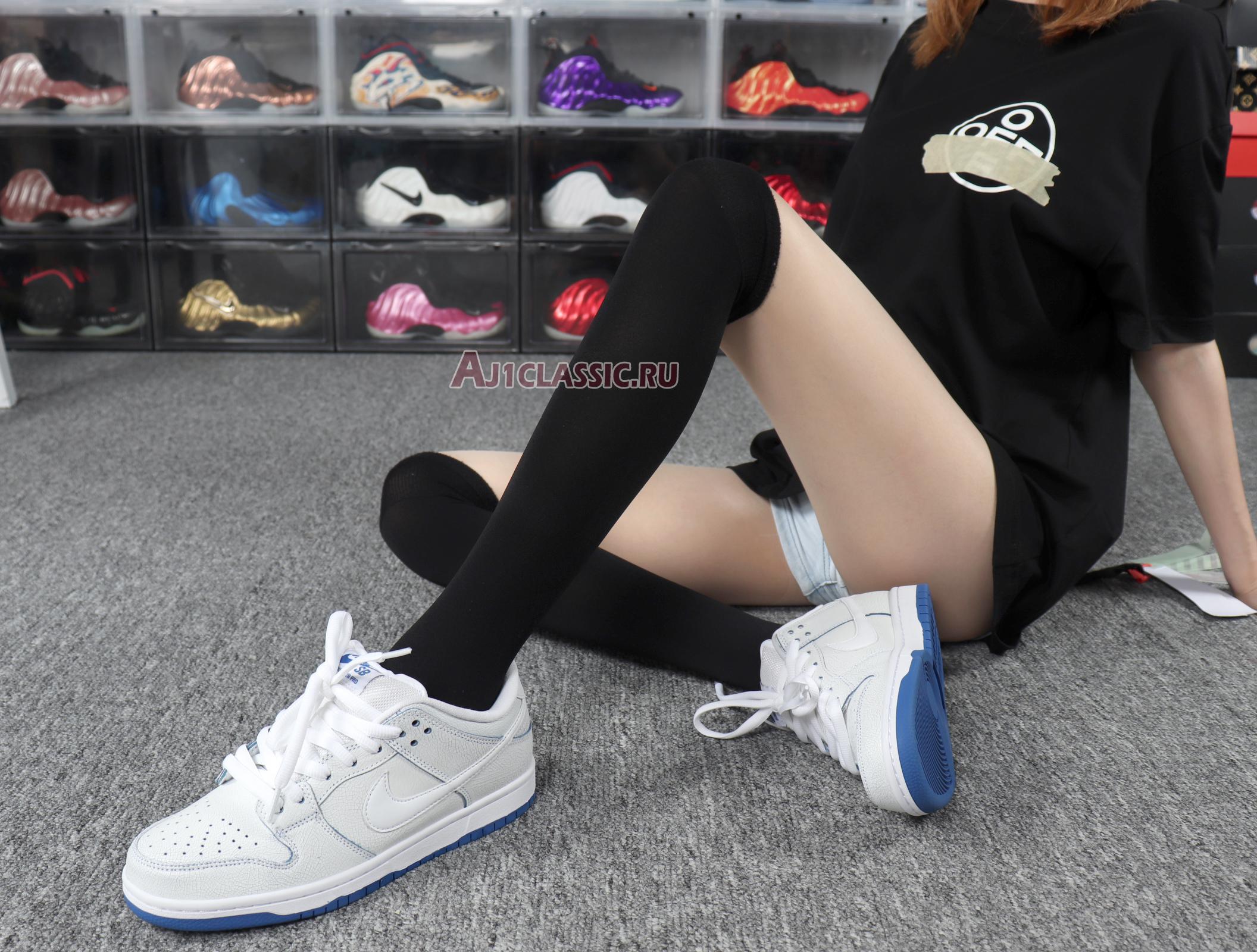 Nike Dunk Low Premium SB "Cracked Leather" CJ6884-100 White/White-Game Royal Sneakers