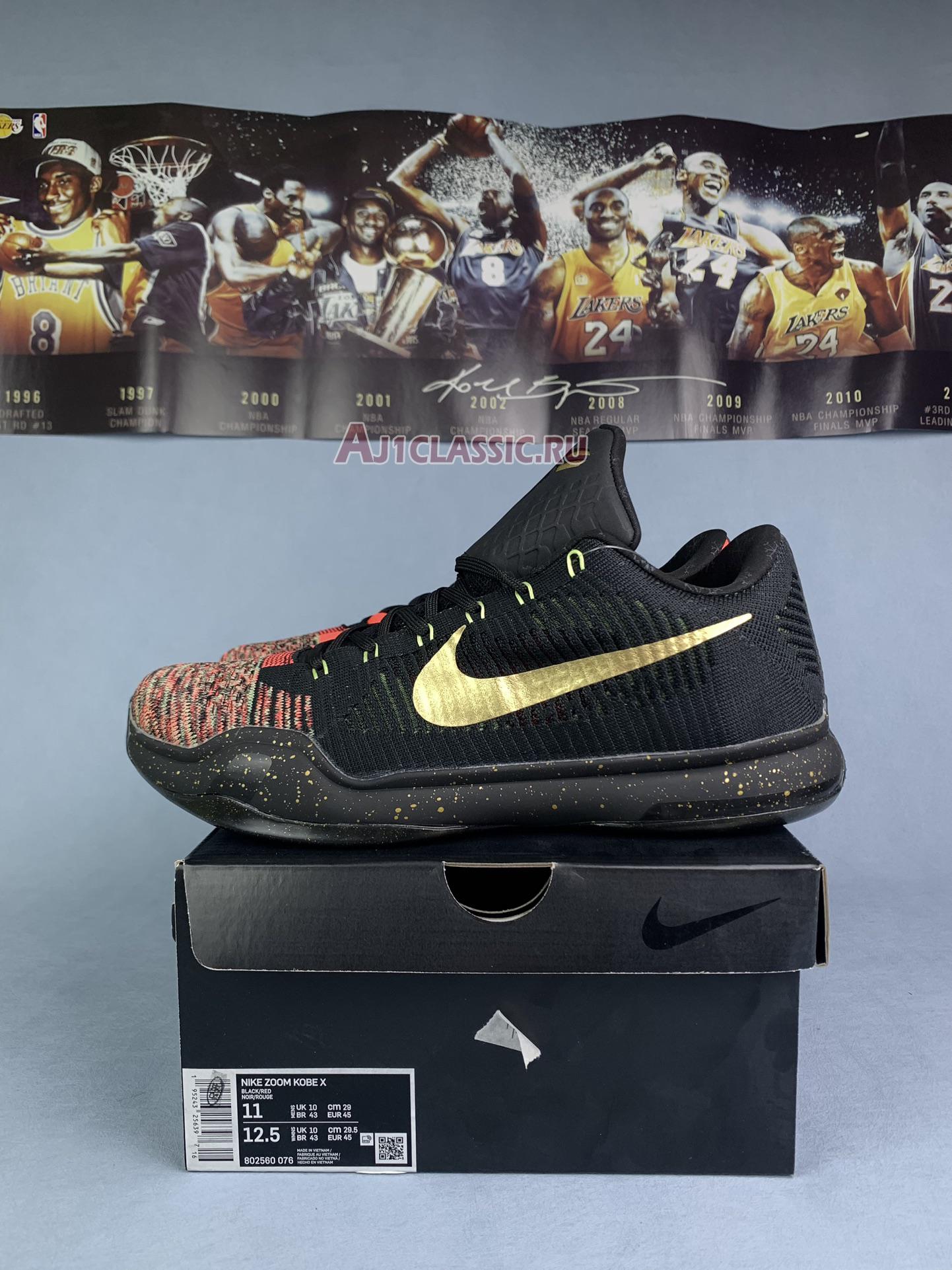 Nike Kobe 10 Elite Low "Christmas" 802560-076 Black/Metallic Gold-Bright Crimson Sneakers