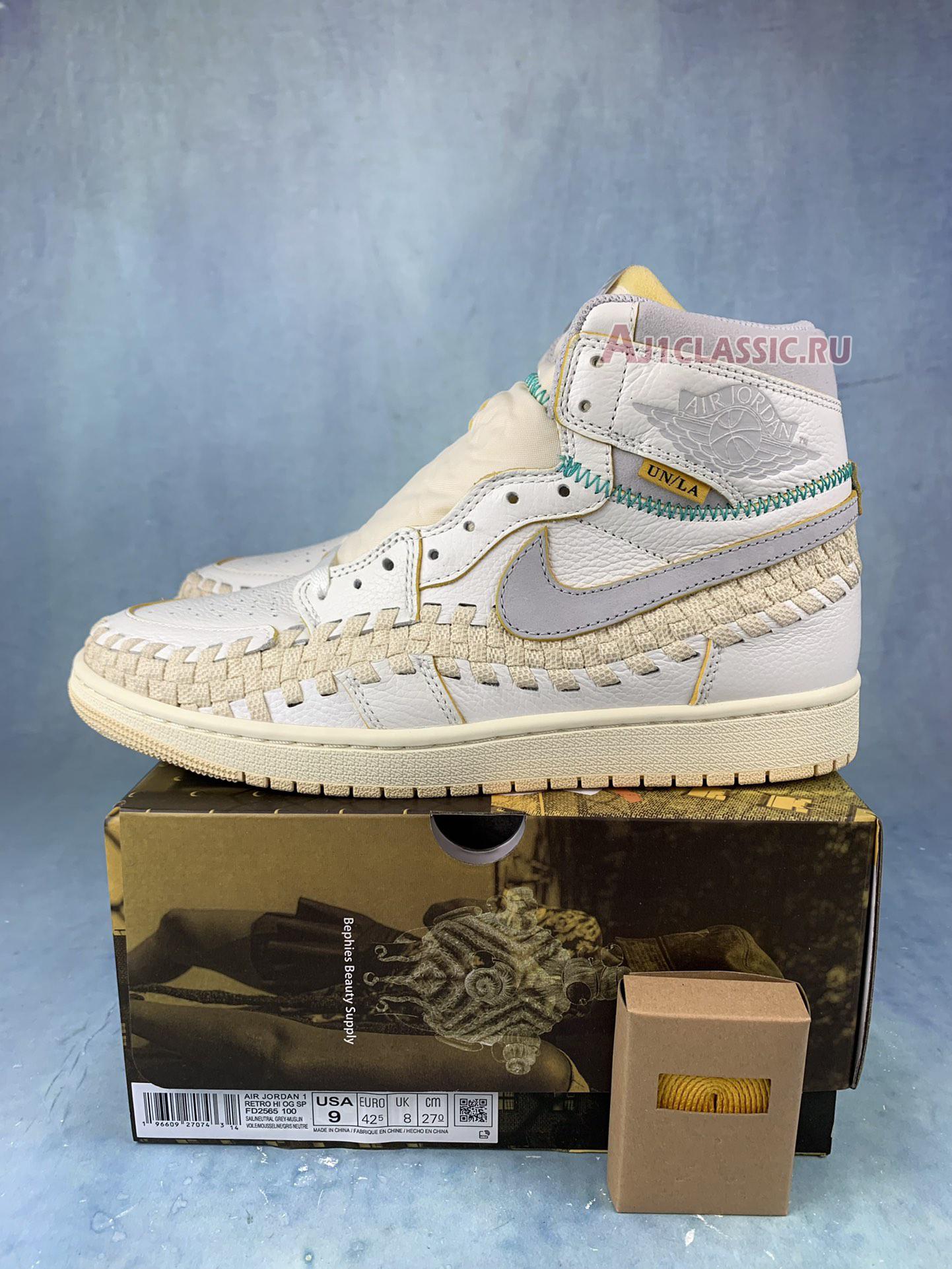 Union LA x Bephies Beauty Supply x Air Jordan 1 Retro High OG SP Summer of 96 FD2565-100 Sail/Wolf Grey/Muslin/Pale Vanilla/Kinetic Green/University Gold Sneakers